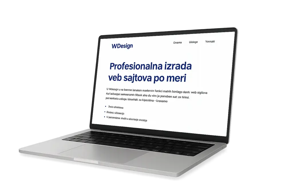 U WDesign-u se bavimo izradom modernih, funkcionalnih i prilagođenih web sajtova koji ostavljaju snažan prvi utisak. Bilo da vam je potreban sajt za firmu, portfolio, prezentaciju usluga ili kontakt sa klijentima – kreiramo internet prezentaciju koja tačno odgovara vašim ciljevima.